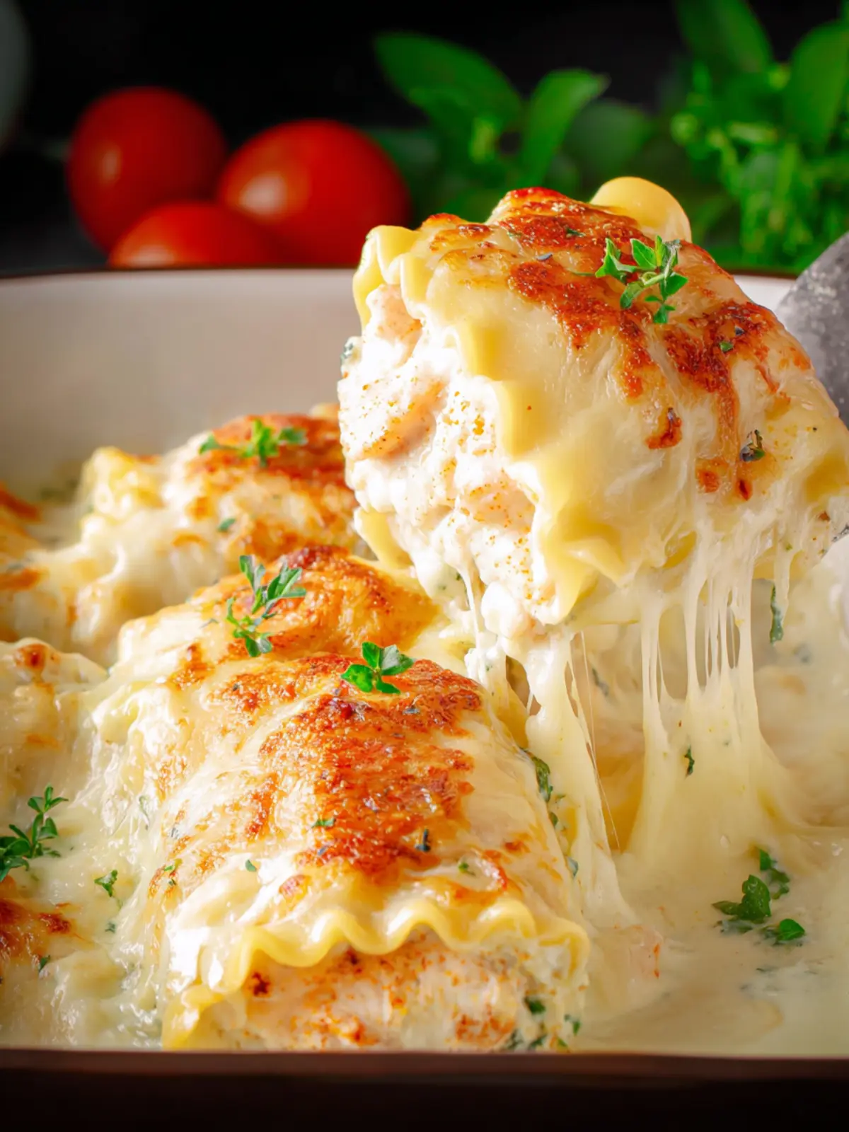 Delicious chicken alfredo lasagna roll-ups that are easy to make and packed with flavor.