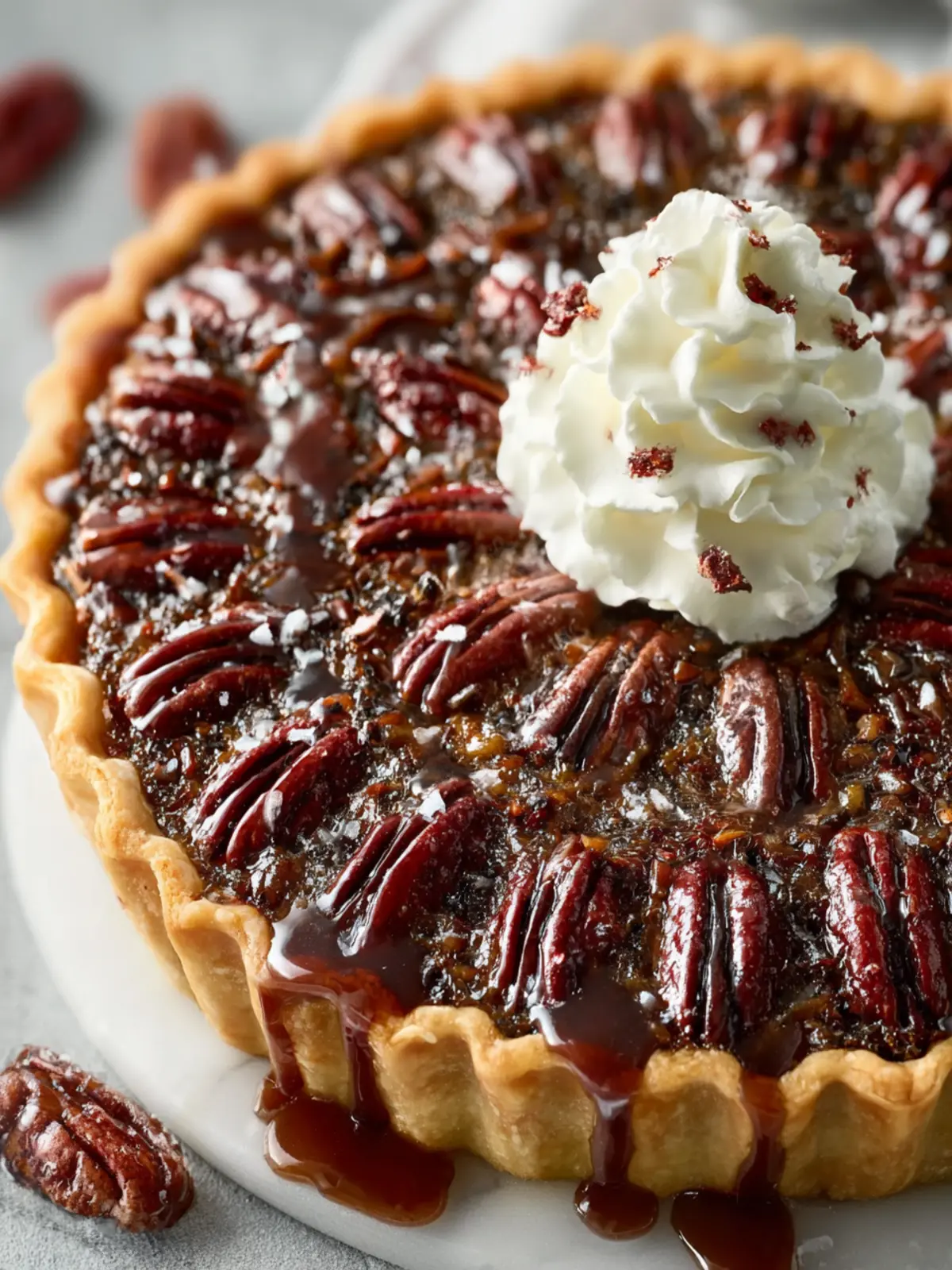 Add a splash of orange zest or a hint of espresso powder to elevate the flavor profile of your Christmas Chocolate Bourbon Pecan Pie. These subtle touches will add complexity and surprise your guests with unexpected, delightful notes.