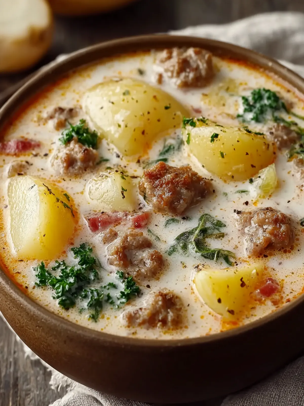 Made with savory Italian sausage, tender potatoes, and a luscious creamy broth, this soup delivers comfort in each and every spoonful. The combination of flavors is simply irresistible—each bite offers a delightful mix of spice and creaminess that dances on your palate.