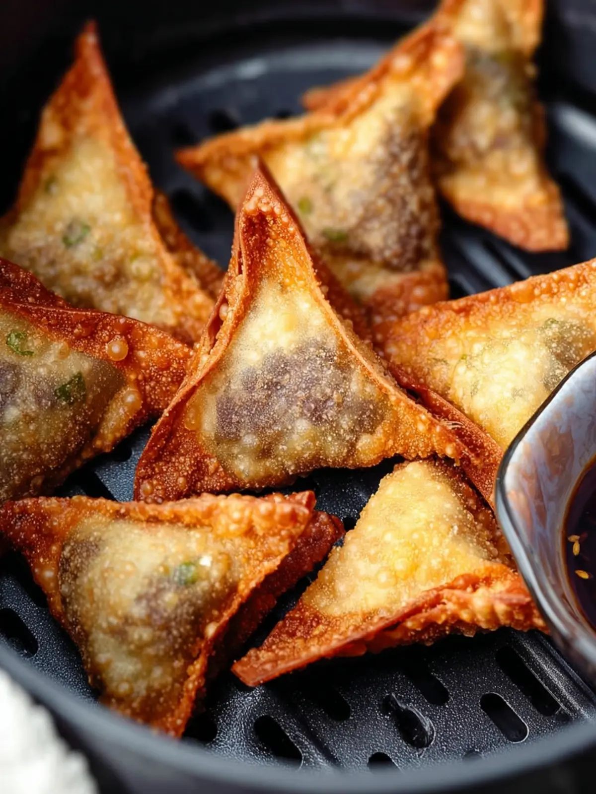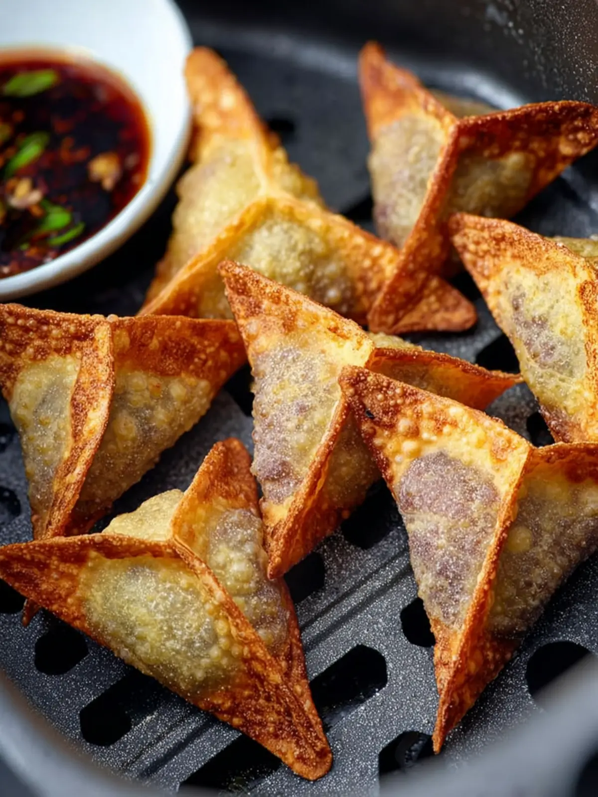 To achieve that sought-after golden-brown color and crispiness, a light spray of cooking oil on the won tons before air frying is essential. It’s the secret to that irresistible crunch while keeping it healthier than traditional frying.