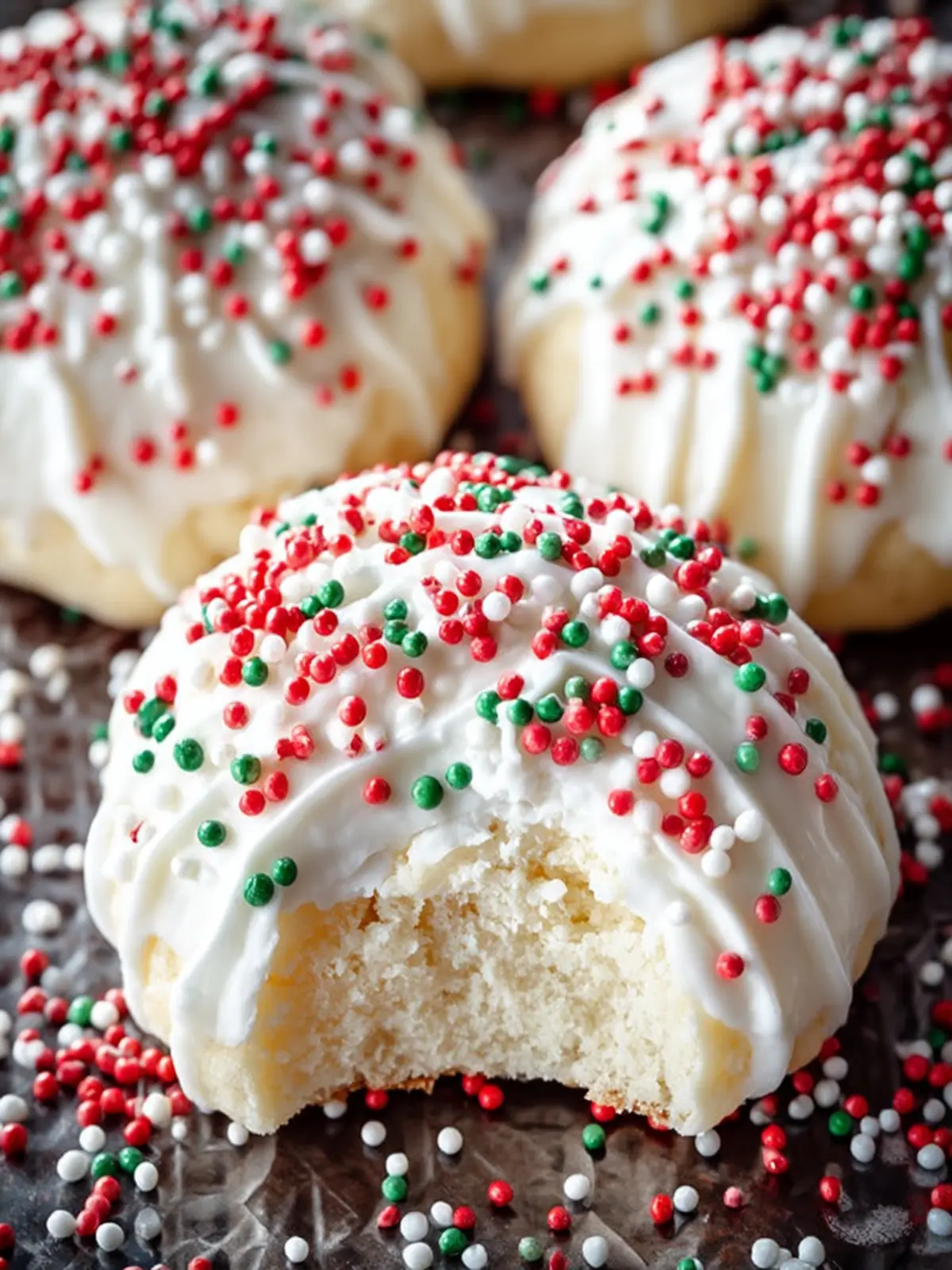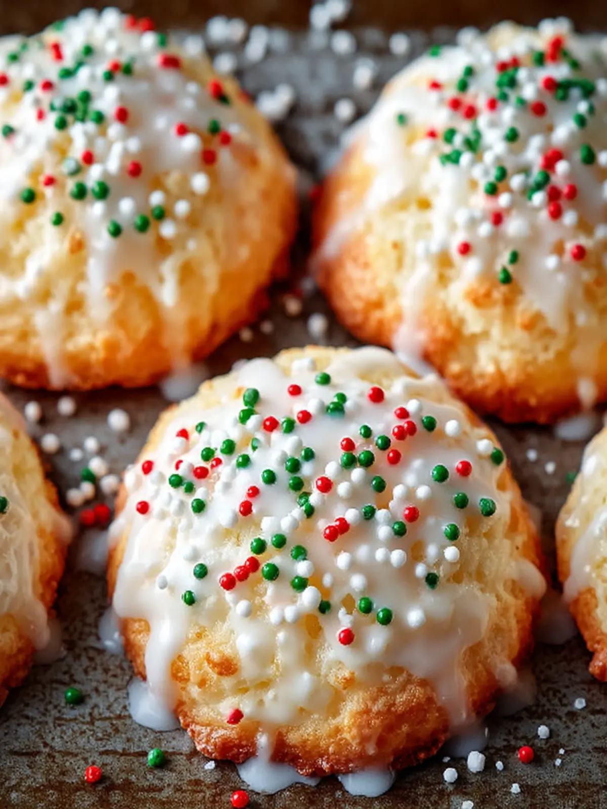 Delicious ricotta cookies glazed with a sweet icing and topped with sprinkles.