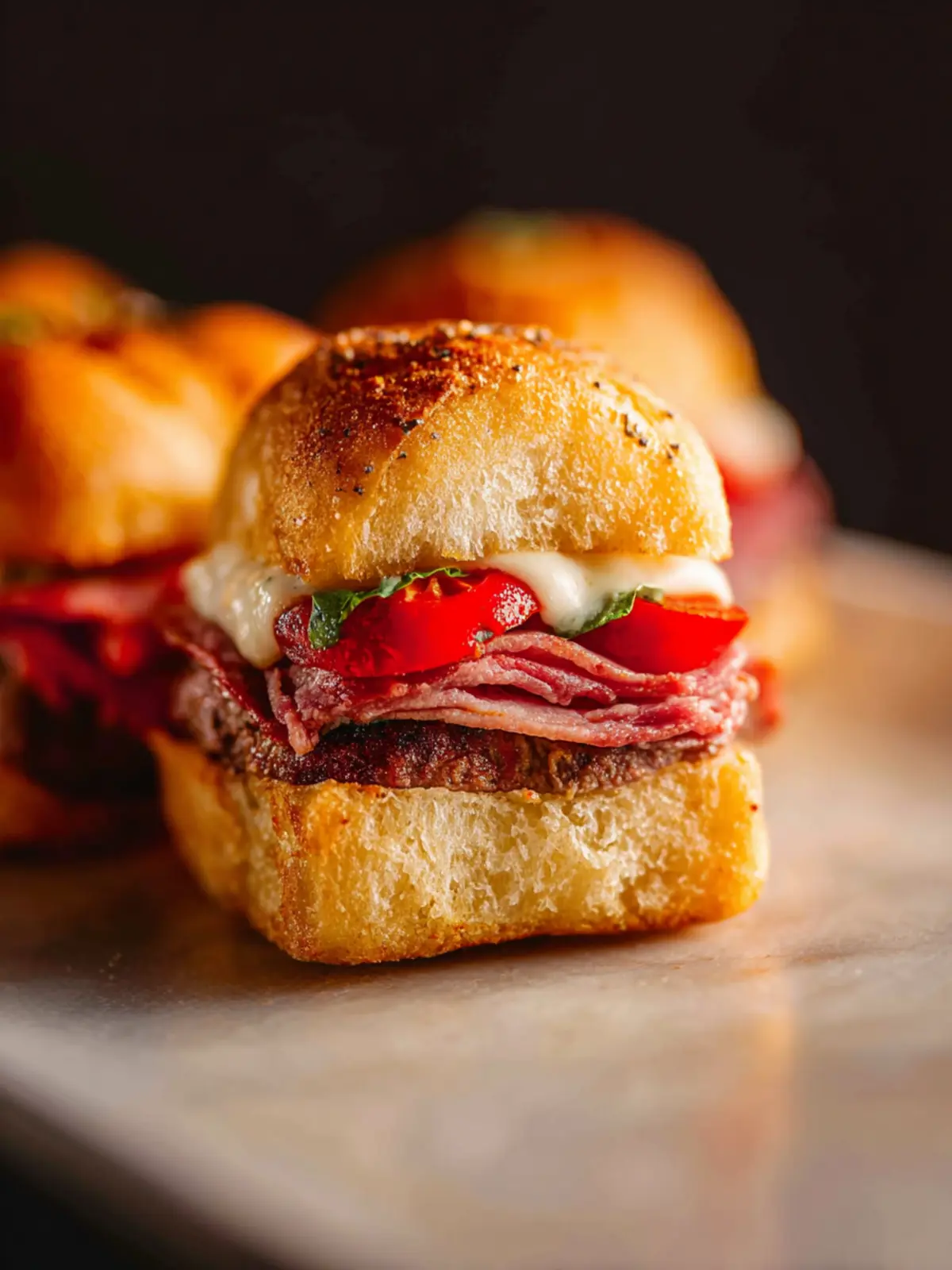 It’s easy to adapt the Italian sliders recipe to fit various dietary needs. If you’re catering to gluten-free guests, swap out regular slider buns for gluten-free ones. For a vegetarian version, replace the meat with grilled portobello mushrooms, roasted vegetables, or a hearty bean patty. If you want to lower the fat content, lean turkey or chicken can be substituted for beef. Dairy-free friends? Just skip the cheese or use a plant-based alternative. The beauty of sliders is their versatility, so feel free to get creative!