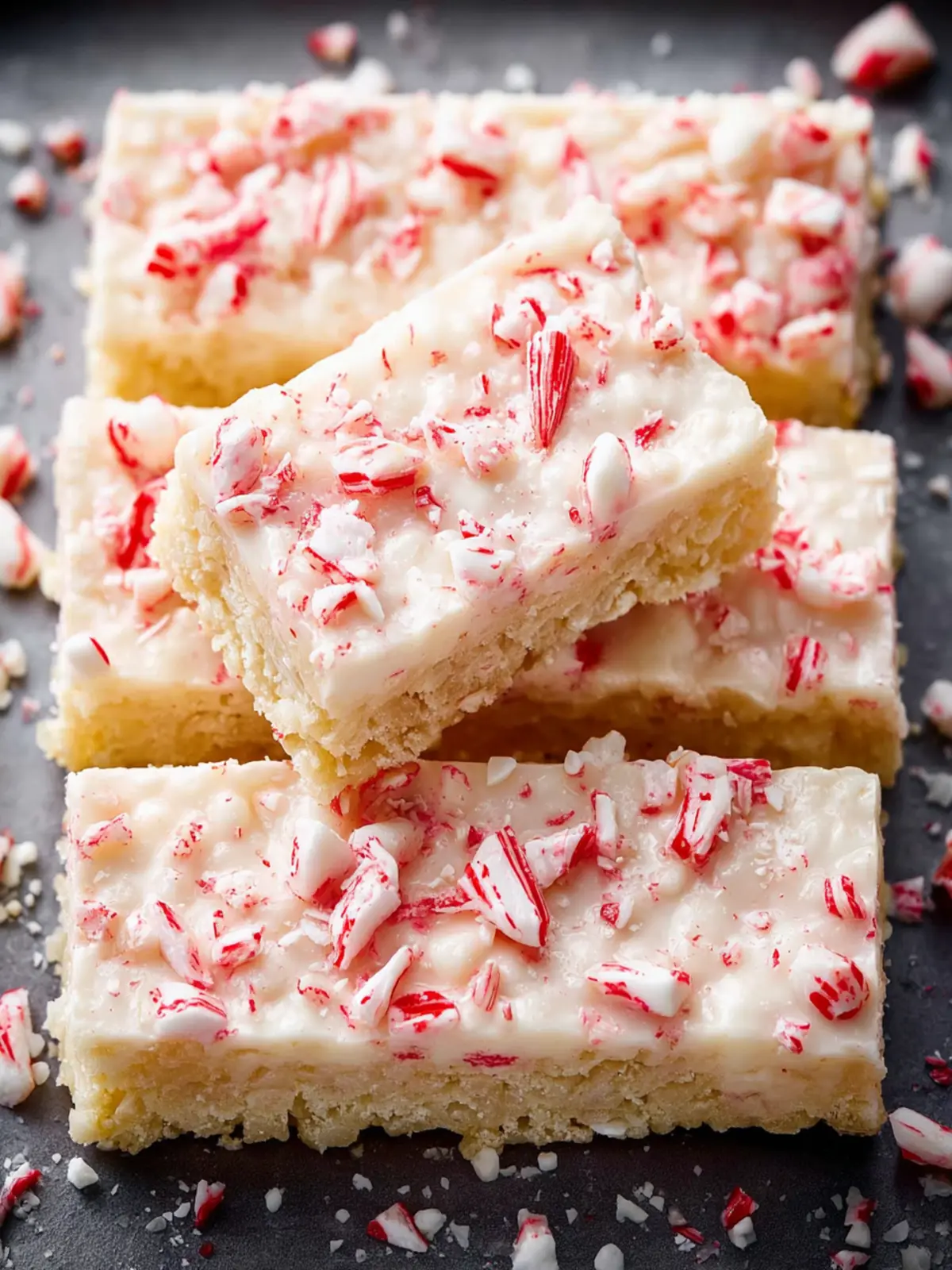 - Spread the melted chocolate over the cereal mixture and sprinkle the crushed candy canes on top. Let cool completely before cutting.