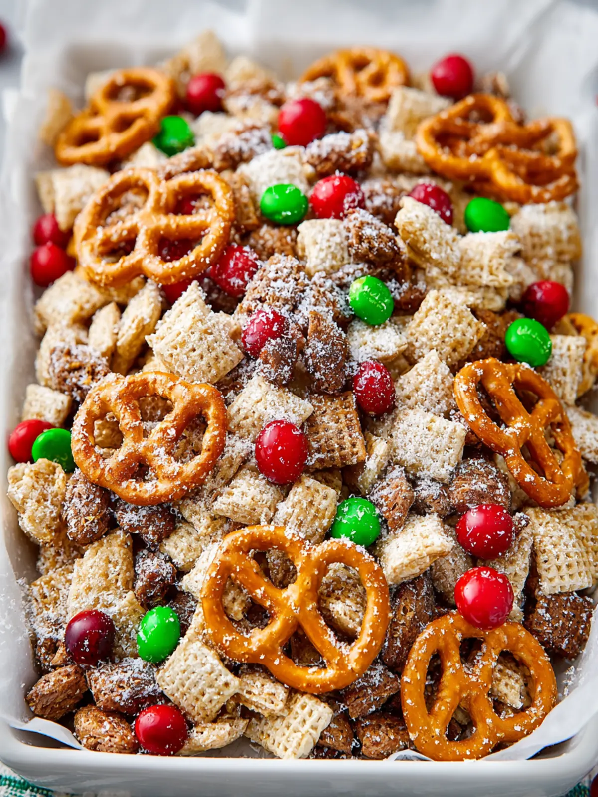 Mixed Nuts: Introduce a variety of chopped nuts, such as almonds or cashews, to add crunch and a nutty flavor to your Reindeer Chow. This not only enhances the taste but also adds a delightful texture.