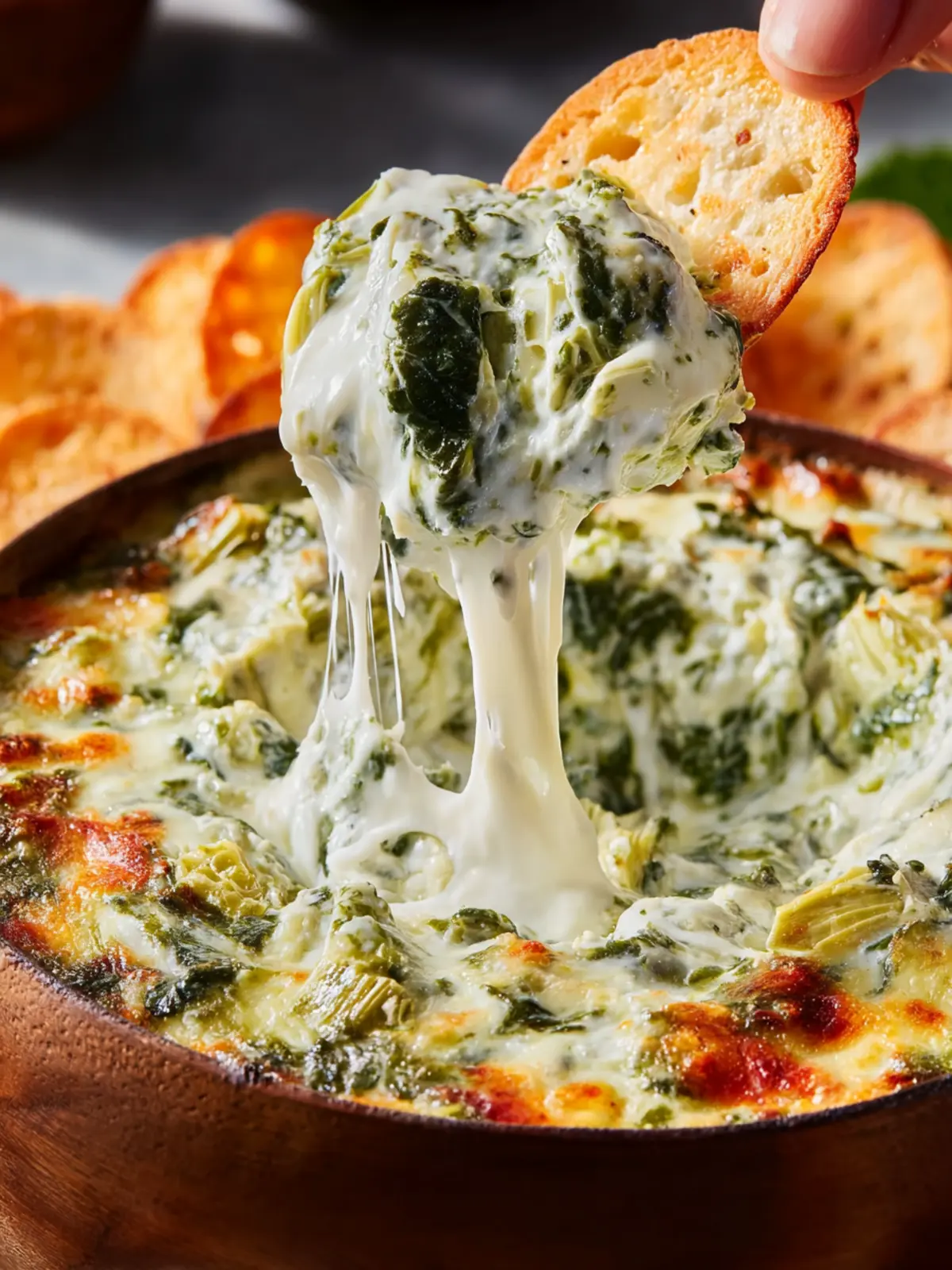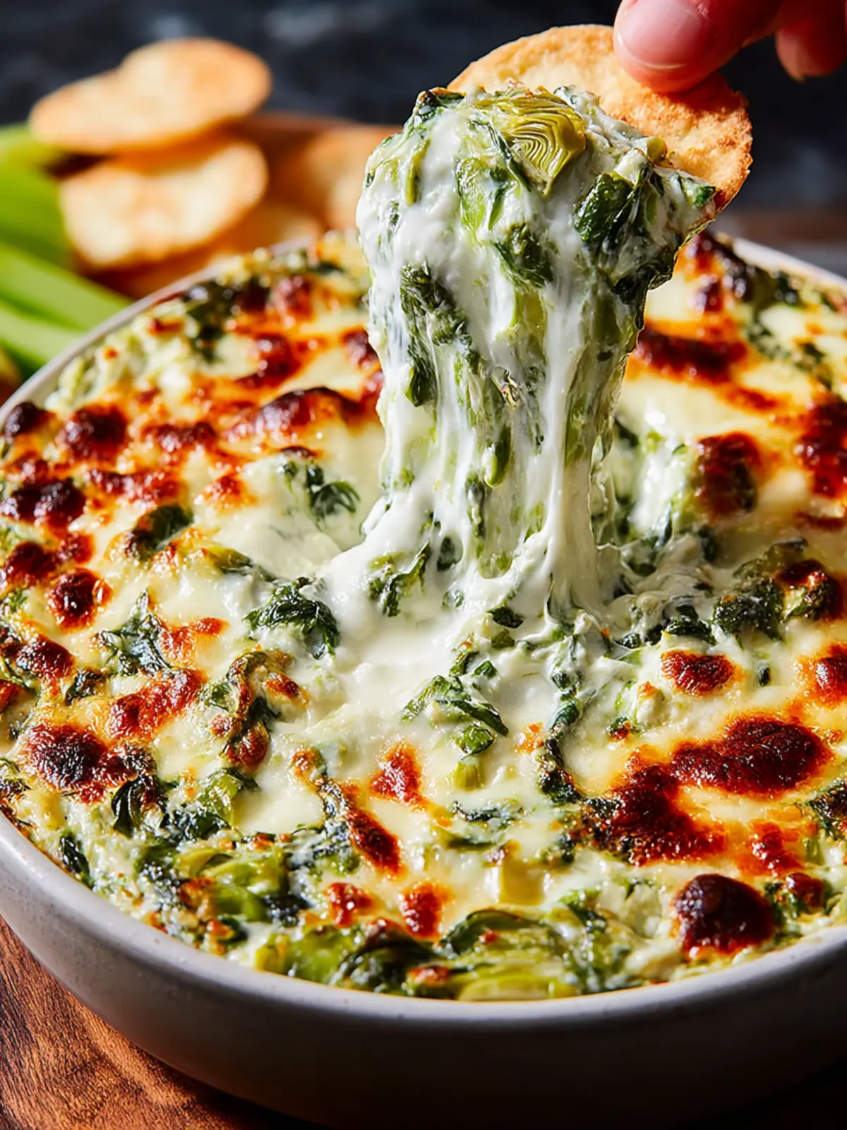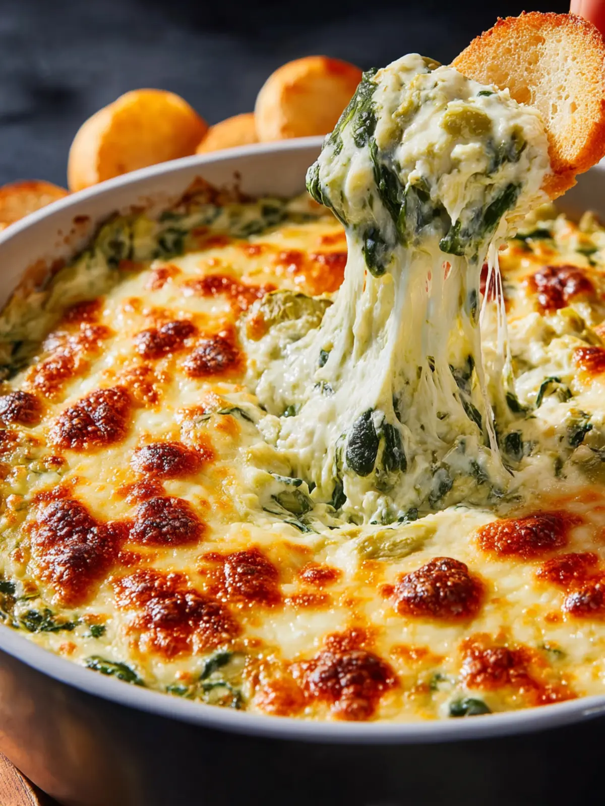 A creamy and cheesy spinach artichoke dip perfect for sharing at any gathering.