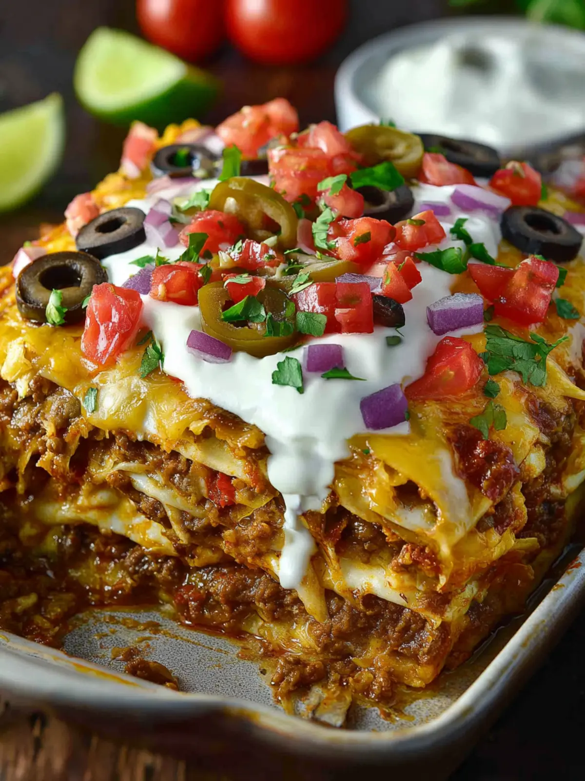 Flavor Explosion: You’ll savor every layer packed with vibrant flavors. Think spices, the creaminess of cheese, and the zest of fresh toppings like sour cream and guacamole. This dish will have you returning for leftovers well into the week.