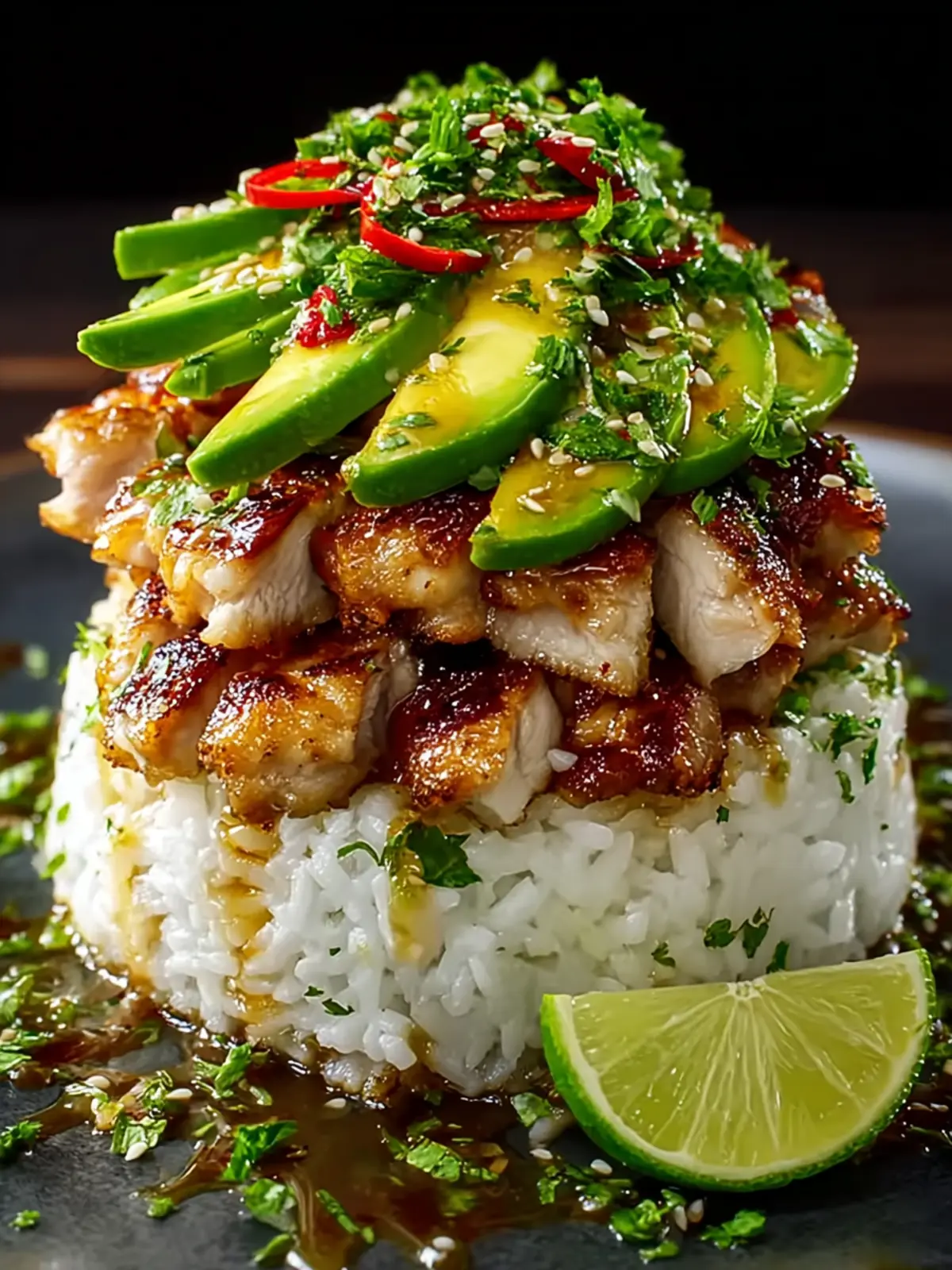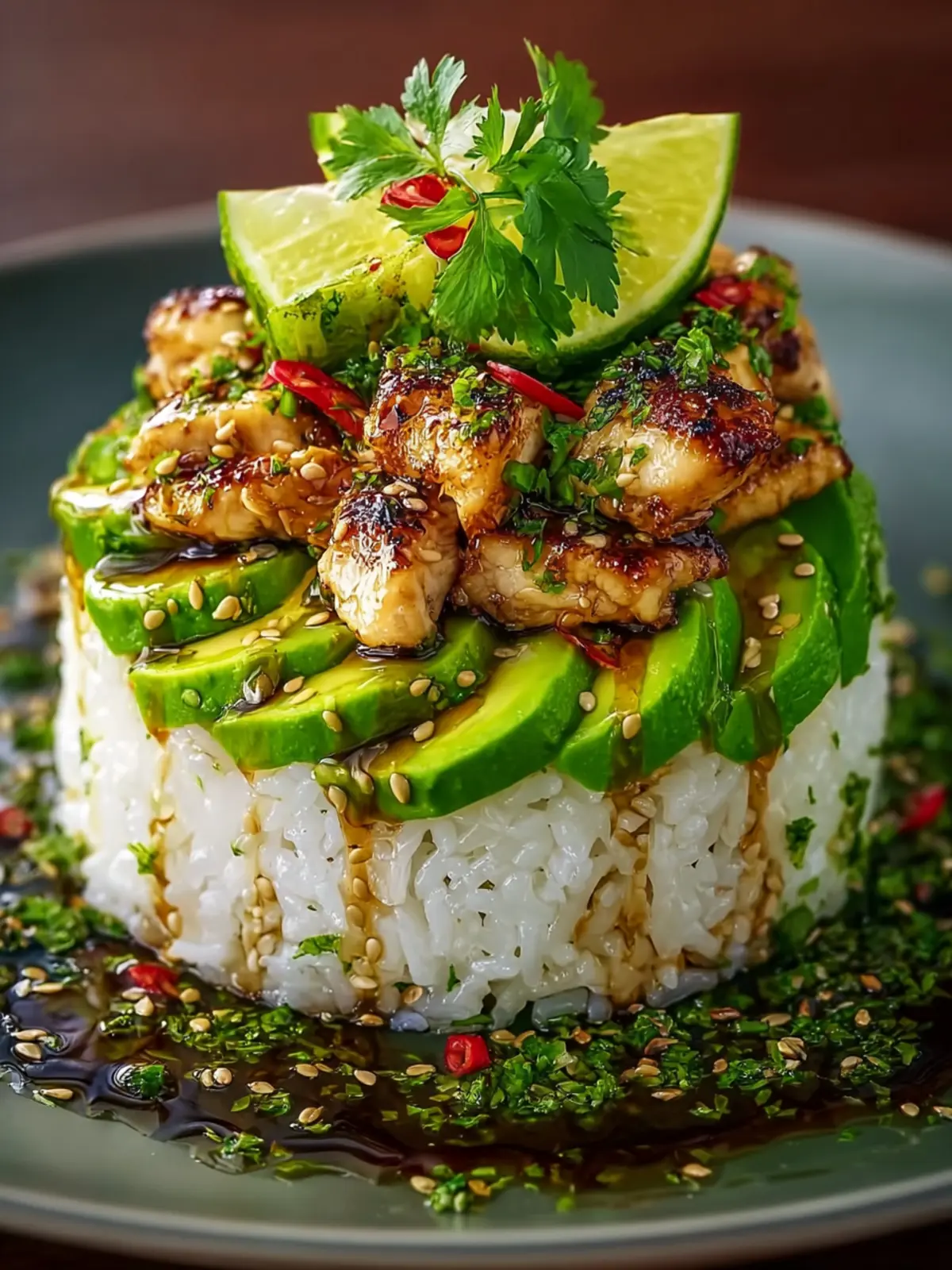 Introduction to Tangy Honey Lime Chicken & Avocado Rice Stack That Delights