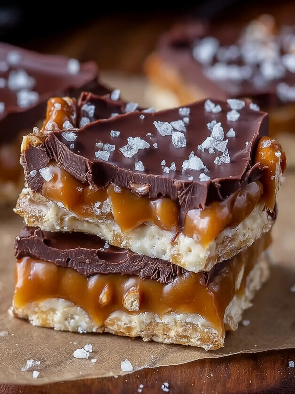 A sprinkle of flaky sea salt on top is essential. It enhances the overall flavor profile, creating an exciting contrast with the sweet chocolate and caramel. Its crunch also adds to the bark’s texture.
