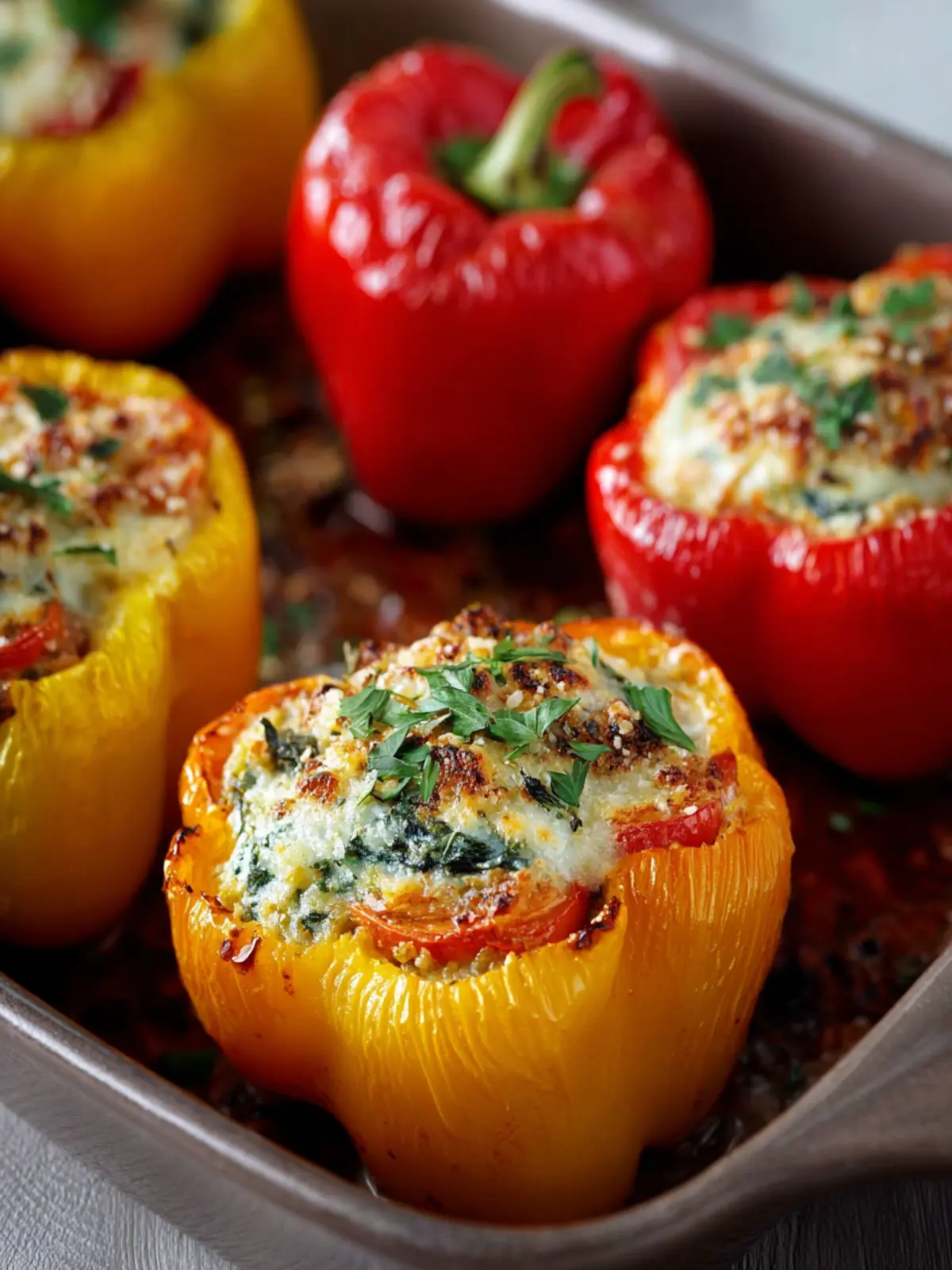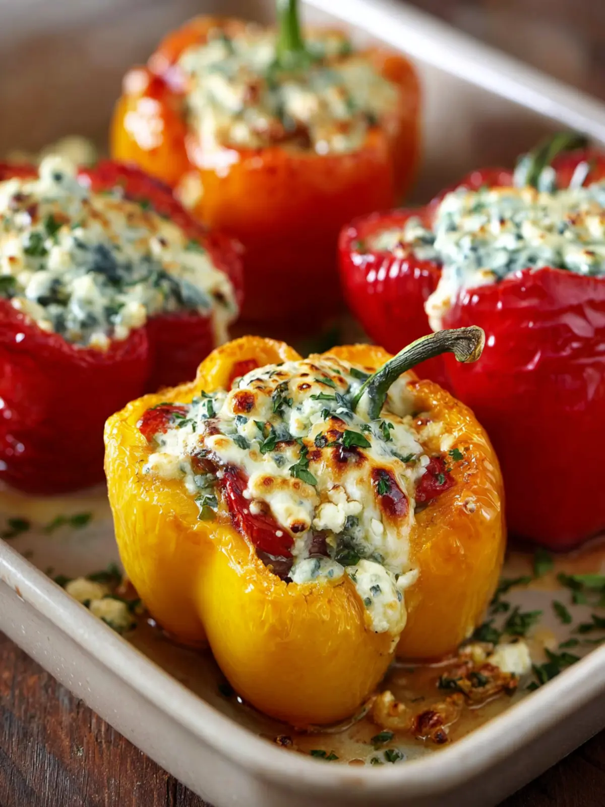 Delicious stuffed bell peppers filled with a creamy ricotta and spinach mixture, perfect for a healthy meal.